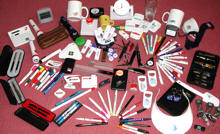 různé reklamní předměty vyrobené z kovu či ze